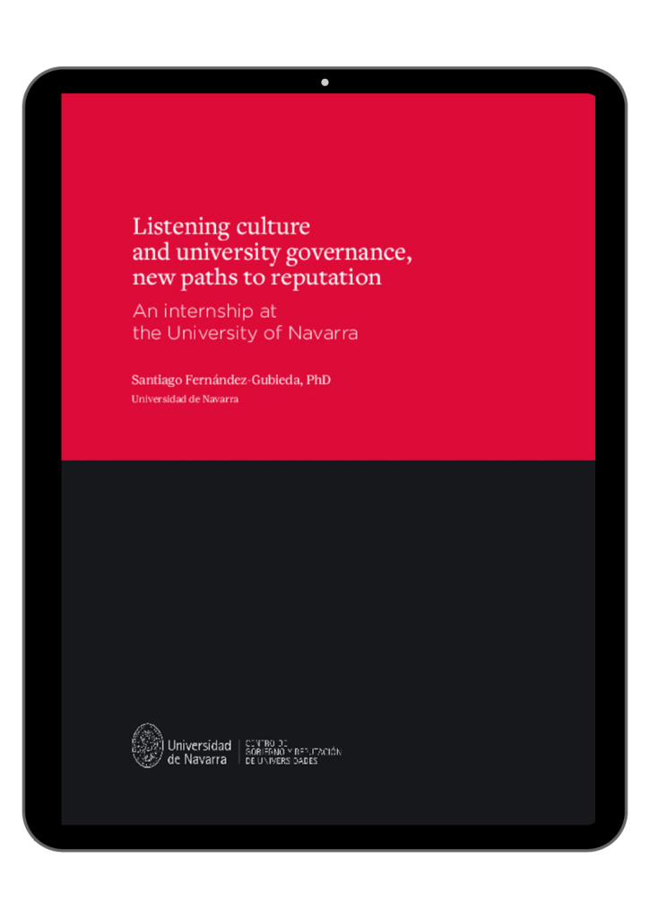 Capítulo «Listening culture and university governance, new paths to reputation. An internship at the University of Navarra». Santiago Fernández-Gubieda. Repositorio académico Dadun, 2024.