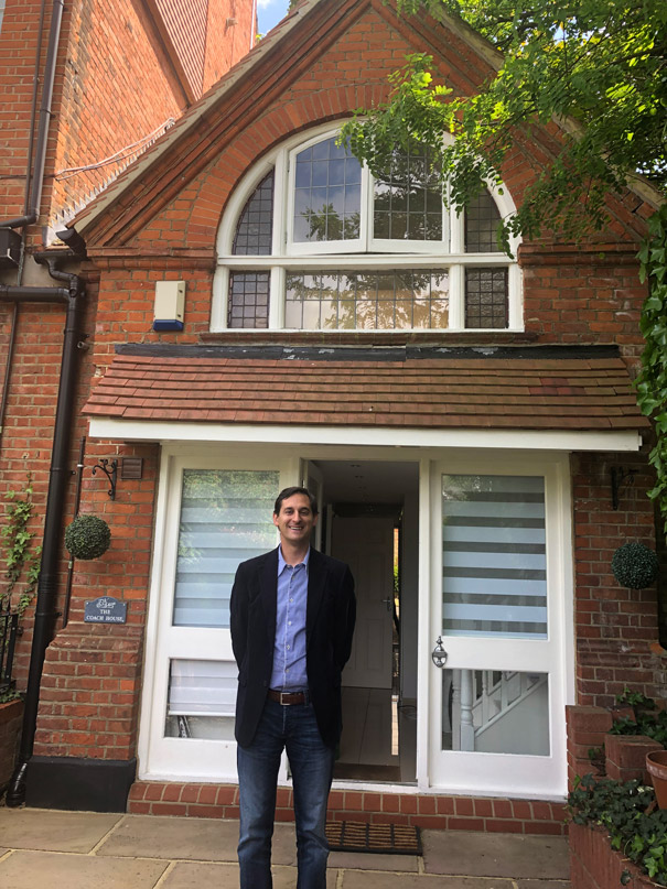 De momento, te dejo una foto mía con pocos meses en mi antigua casa, un sencillo cottage en Beckenham y otra un poco más crecidito en la misma casa, ¡cuarenta años después!